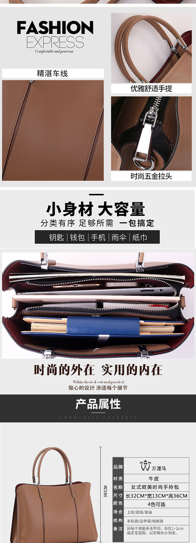 万浬马-女式欧美时尚手拎包 牛皮包