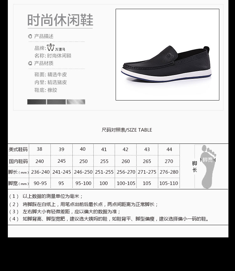 万浬马-男士休闲时尚牛皮鞋舒适真皮皮鞋